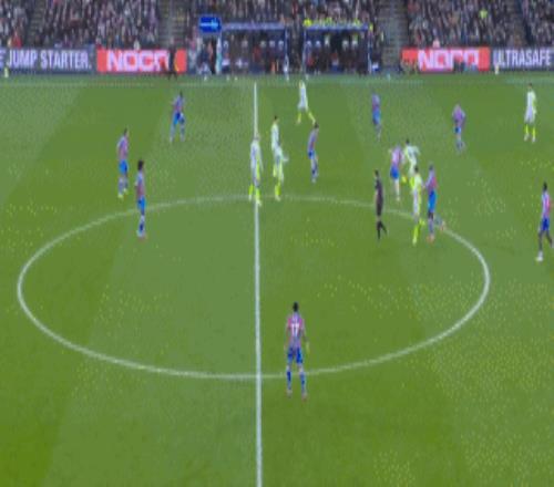 89分鐘,哈蘭德主罰點球,迪恩·亨德森判斷錯方向,哈蘭德將球穩穩罰進,曼城3-0水晶宮。