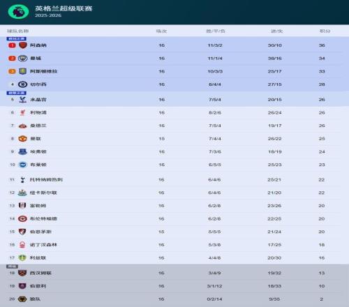 隨著諾丁漢森林3-0托特納姆熱刺、桑德蘭1-0紐卡斯爾聯、西漢姆聯2-3阿斯頓維拉、水晶宮0-3曼城,英超第16輪最新積分榜出爐!