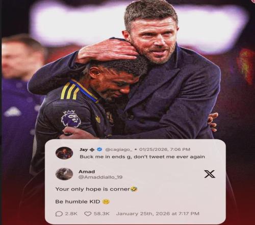 曼聯球星阿馬德-迪亞洛在推上回復了一名槍迷,他寫道:“你們唯一的希望也就是角球了(笑哭),謙虛點吧孩子。”