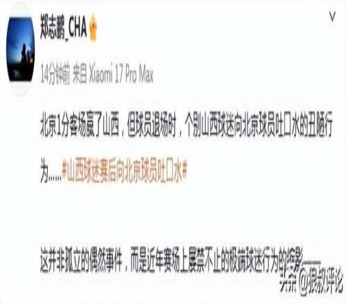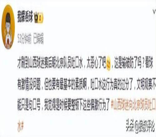 北京1分客場贏了山西,但球員退場時,個別山西球迷向北京球員吐口水的丑陋行為……