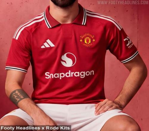 曼聯2026-2027賽季的主場球衣依然延續了俱樂部的傳統紅色,象征著激情與榮耀。球衣的主色調為鮮艷的紅色,體現了曼聯作為英超頂級豪門的獨特氣質。與往常一樣,白色和黑色成為了設計的輔助手段,白色細節用來勾勒領口和袖口,黑色則在肩膀和側邊部分進行了點綴,整體設計既簡潔又充滿力量感。此設計不僅承載了曼聯悠久的歷史,也彰顯了球隊的現代風貌。